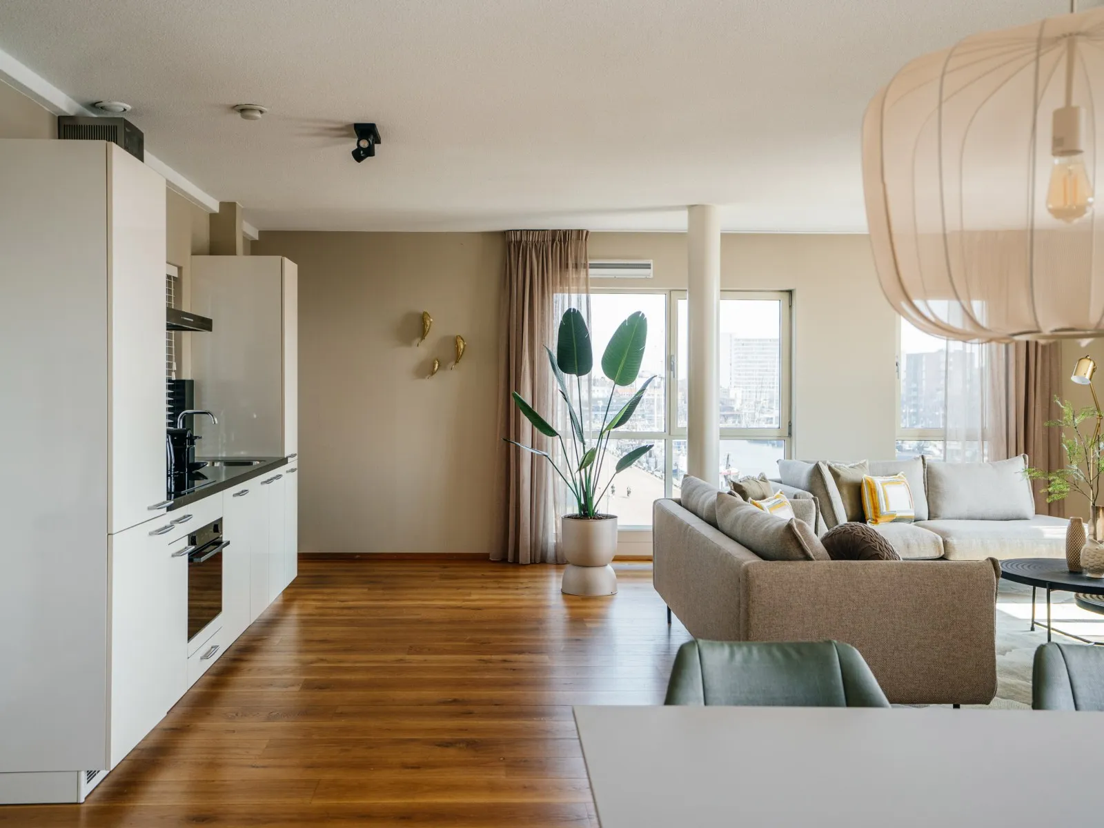 The BizStay Harbour no. 12 apartment is a truly remarkable gem. This spacious 2-bedroom apartment, covering 116 square meters, offers breathtaking harbour views from three sides. The apartment boasts a delightful balcony overlooking the harbour, providing a picturesque view of the boats coming and going. The interior of the apartment is exquisitely designed and furnished to the highest standard, ensuring a luxurious experience. It offers essential amenities, including high-speed internet, a large SMART TV, a fully equipped kitchen, a spacious bathroom, a separate toilet, and private laundry facilities with a washer and dryer. With two bedrooms, the apartment can comfortably accommodate up to five people. The comfortable box spring beds in each bedroom ensure a good night's sleep. Each bedroom also features a SMART TV. A desk is provided, making the apartment suitable for both work and leisure and perfect for both short and extended stays.