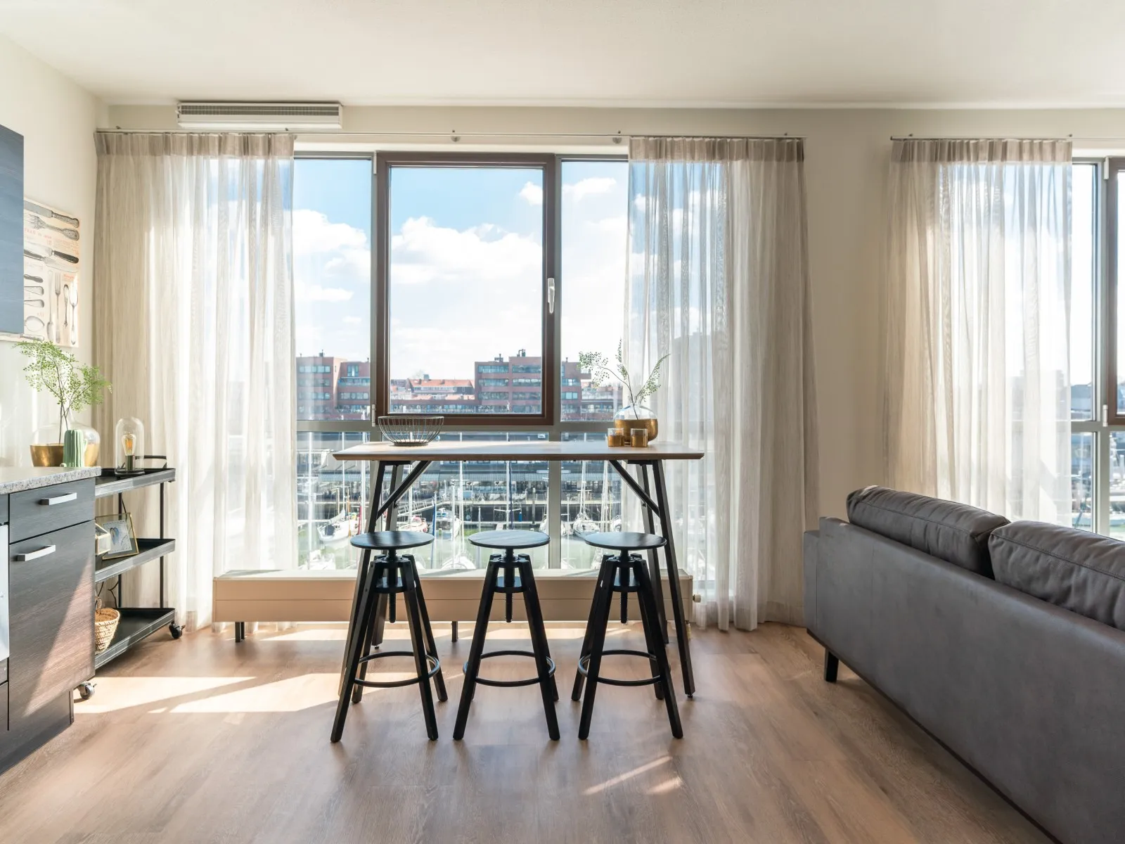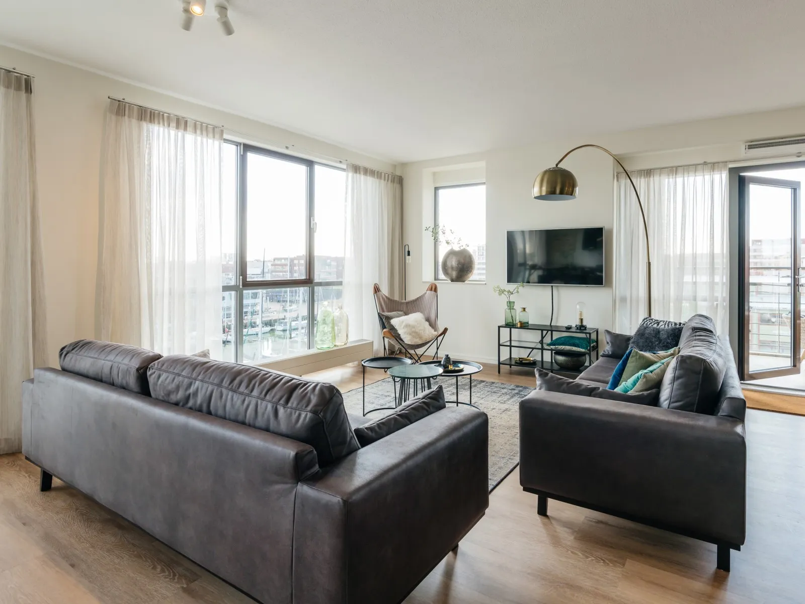 BizStay Harbour 80B measures 123 m2 and is one of the few 3-bedroom / 2 bathroom apartments BizStay offers on this venue. The spacious balcony faces South-West and overlooks the ship yard and the many yachts moored in the harbour. The apartment itself is beautifully designed and furnished to the highest standard, providing a luxurious and comfortable setting for your stay. It includes essential amenities such as high-speed internet, a large SMART TV, a fully equipped kitchen, two spacious bathrooms with shower, of which one also has a bath, a second separate toilet, and private laundry facilities including a washer and a dryer. With three spacious bedrooms this apartment can accommodate up to six people. The comfortable box spring beds ensure a good night's sleep. Each bedroom is equipped with a SMART TV, and a desk is provided, making the apartment ideal for both work and relaxation. It's suitable for both short-term and long-term stays, offering all the necessary facilities.