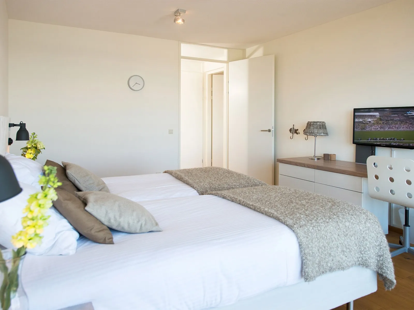 The apartment is part of the Nautical Center Scheveningen, nestled at the second inner harbour of Scheveningen and only 15 minutes away from the vibrant city center of The Hague. Scheveningen is the most famous seaside resort of The Netherlands with an abundance of attractions and beach pavilions. Within walking distance, you'll find the beautiful beach, some of the finest local restaurants, a supermarket, and the 'world-renowned' local fish shop Simonis, with the best fresh fish in town. A leisurely stroll along the promenade takes you to the famous pier with the ferris wheel, and after sunset, you can put on your dancing shoes to enjoy the vibrant nightlife. During your stay, you can also explore one of the many cultural hotspots the city of The Hague has to offer, including world-class attractions like the Louwman car museum, miniature city Madurodam, Legoland and art museums like Escher in the Palace, Mauritshuis, and Voorlinden. This seamless fusion of beach life and city life is why so many people return to this stunning location year after year.