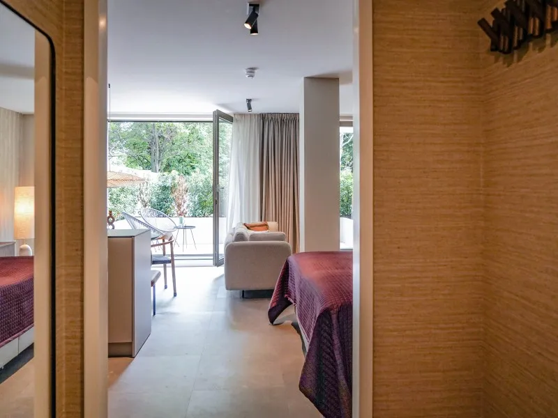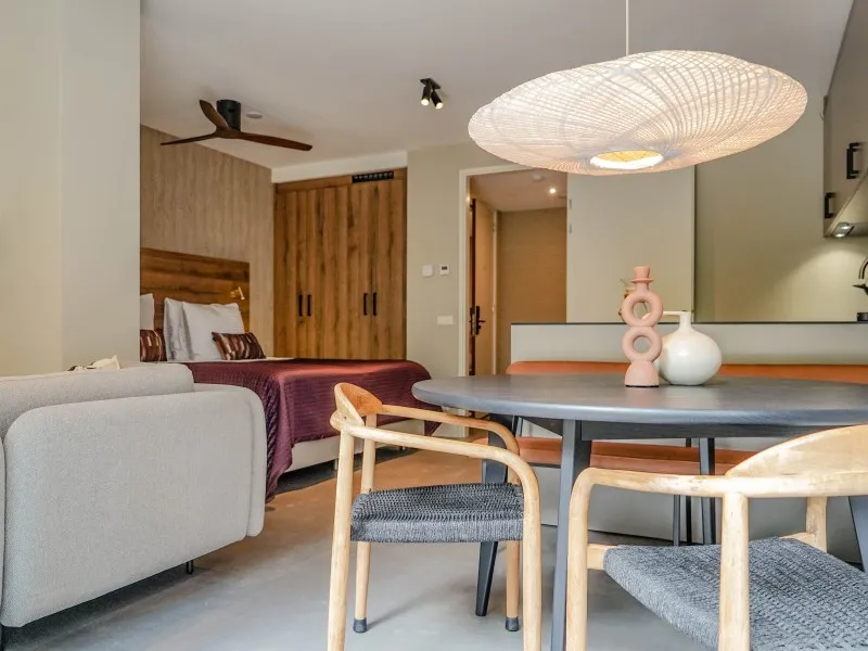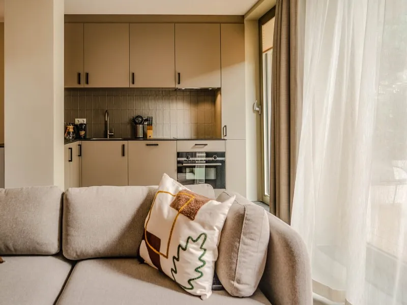 This studio apartment, designed for up to two guests, demonstrates that a 40 sqm space doesn't require compromising on comfort. It features a fully equipped kitchen, a dining area, a cozy sofa, a large SMART TV with Chromecast, a comfortable bed, a bathroom, a private washer and dryer, and a 10 sqm private terrace. You'll be pleasantly surprised by the level of comfort packed into this compact space. Whether you're on a budget-friendly business or leisure trip, this apartment is the perfect place to stay for a few days, a week, or even months. Notably, the electricity and heat you'll use during your stay are primarily generated by solar collectors, contributing to the sustainability of BizStay Walden, making it an eco-friendly building.