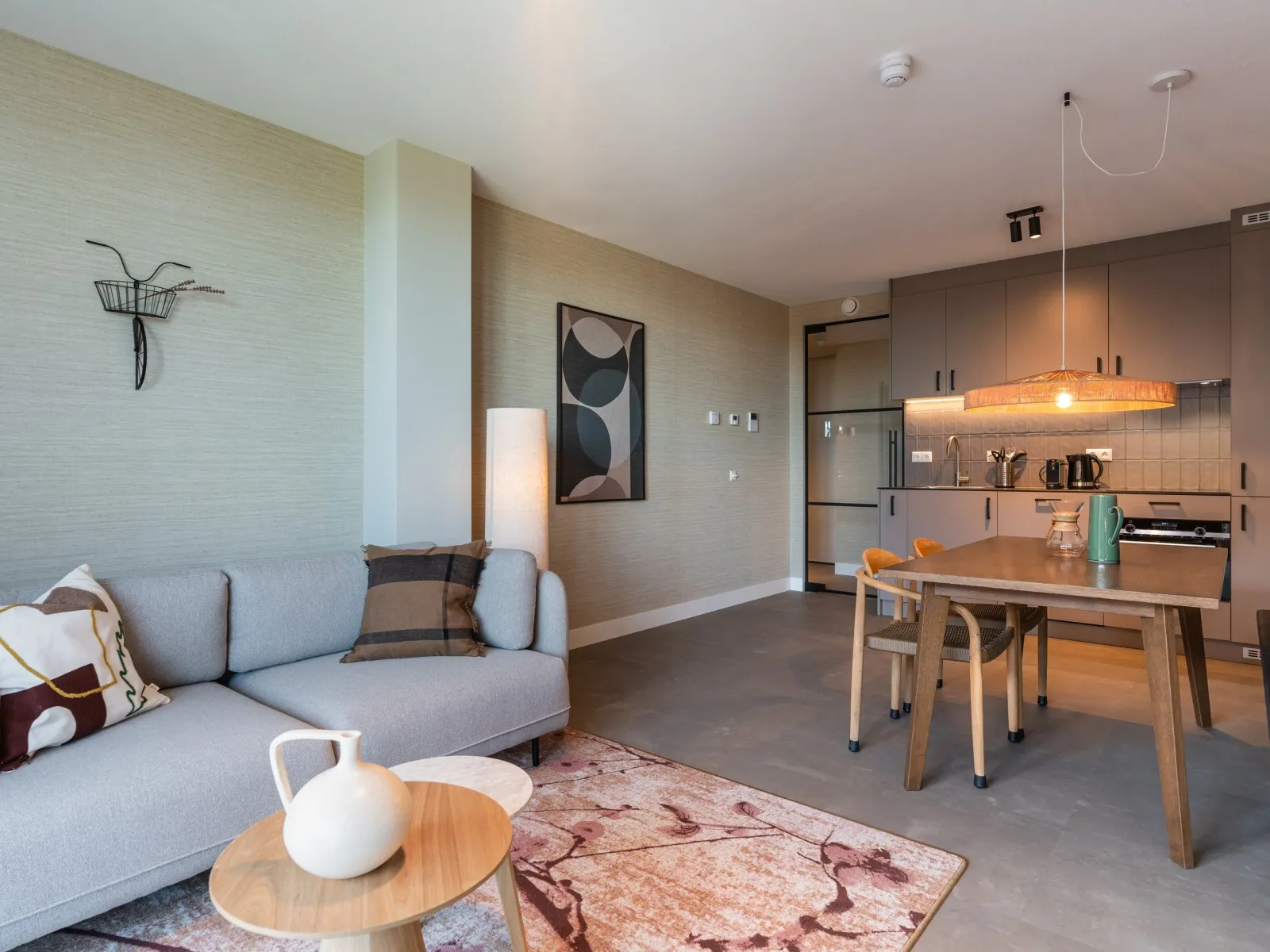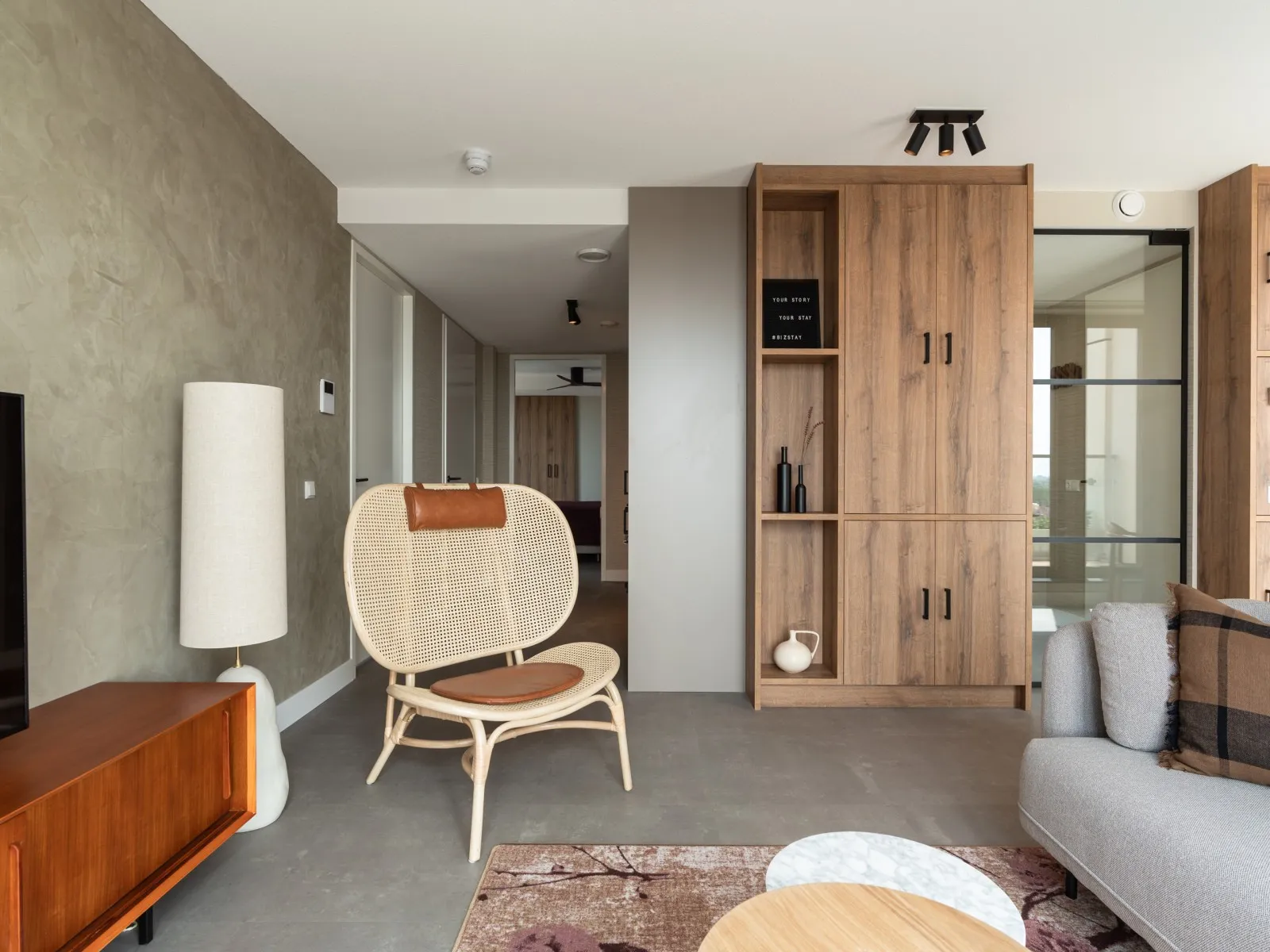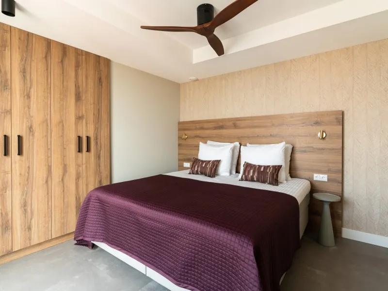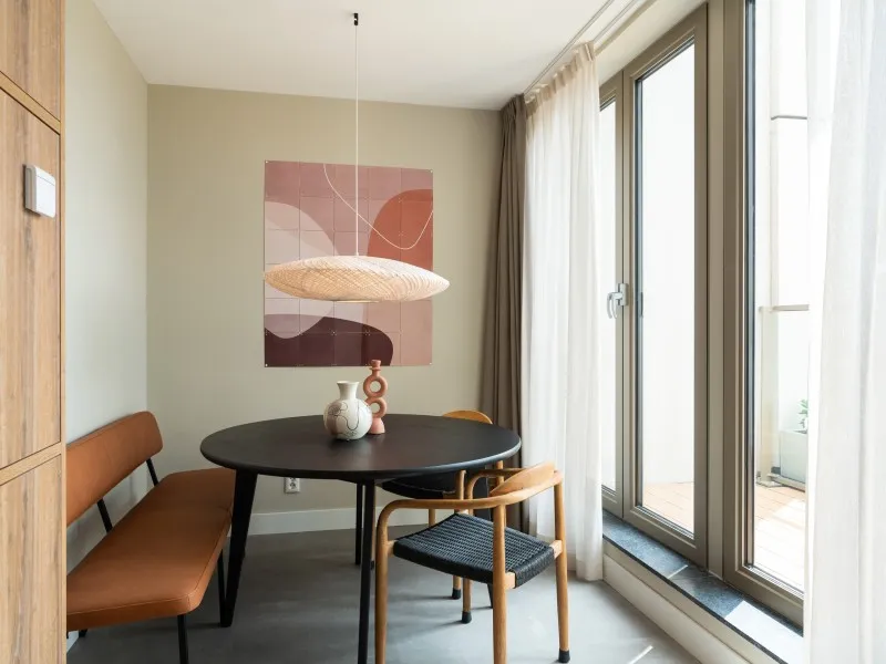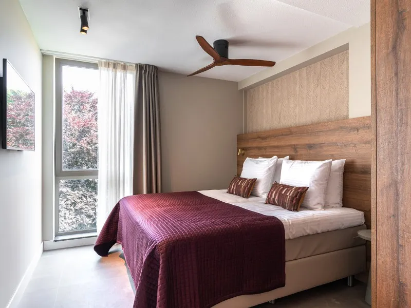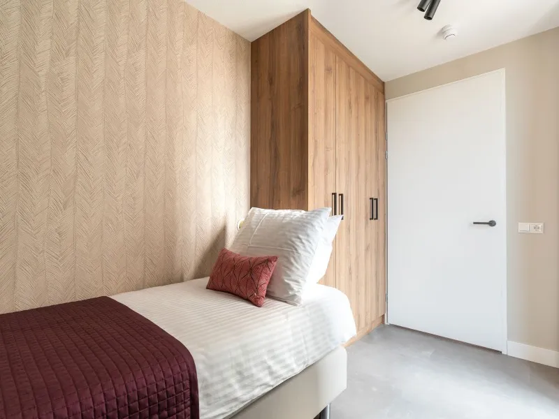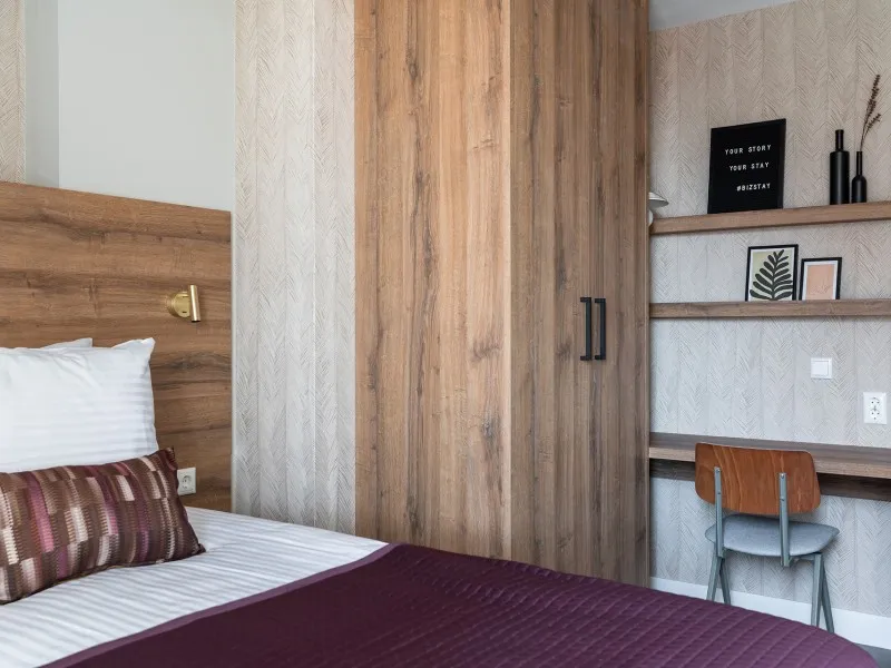 These 2-bedroom apartments, each spanning 60 sqm, provide a more compact alternative to the larger 2-bedroom units. Designed to accommodate up to 3 guests, they are perfect for smaller families or two individuals who wish to share a living space while enjoying the comfort of private bedrooms. Whether your stay is brief or extended, these apartments provide all the comfort you need. As you step inside, you'll immediately experience the inviting atmosphere consistently carried throughout the interior, marked by a harmonious blend of natural colors, materials, and contemporary technology. The apartment features a fully equipped kitchen, a dining area, a cozy sofa, and a large SMART TV with Chromecast. The master bedroom is furnished with a comfortable double bed, another SMART TV with Chromecast, a desk, and ample closet space. In the second bedroom, you'll find a comfortable full-size single bed and closet space. The spacious bathroom includes a shower, a vanity with drawers, and a heated mirror. There is a separate toilet and a laundry room equipped with a washing machine and dryer. Additionally, the apartment boasts a 4 sqm balcony. Remarkably, the electricity and heat you'll utilize during your stay are primarily generated by solar collectors, underlining the sustainability of BizStay Walden as an eco-friendly building.